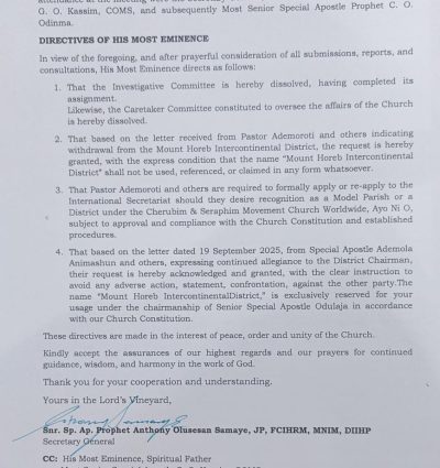 Mount Horeb Intercontinental District Headquarters prioritises nurturing a Christ-centred culture, empowering members to live out their faith, and adapting strategies to reach and serve people effectively in an ever-changing world.