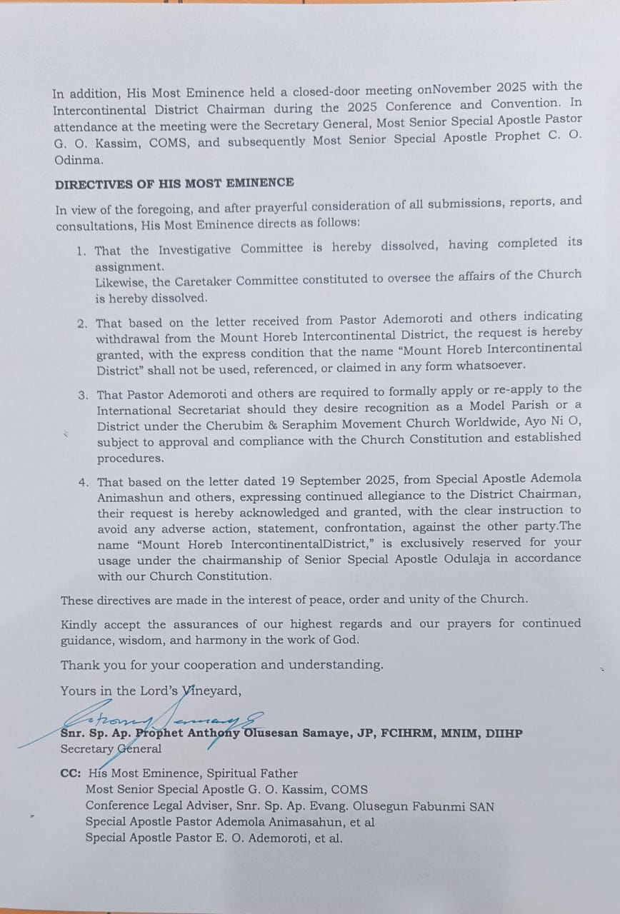 CHERUBIM AND SERAPHIM MOVEMENT CHURCH WORLDWIDE.