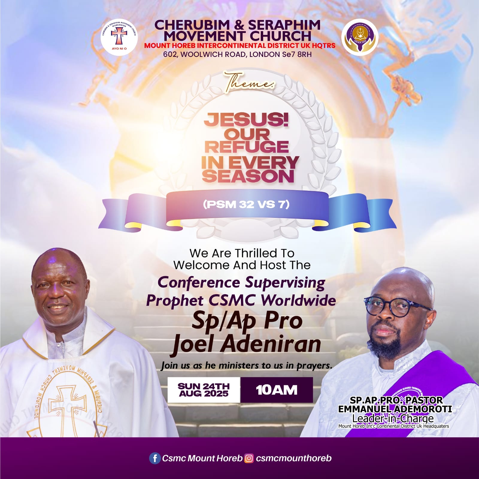 the Conference Supervising Prophet,the person of Special Apostle Prophet Joel Adeniran, visited Mount Horeb Intercontinental District UK Headquarters on Sunday 24th August 2025.